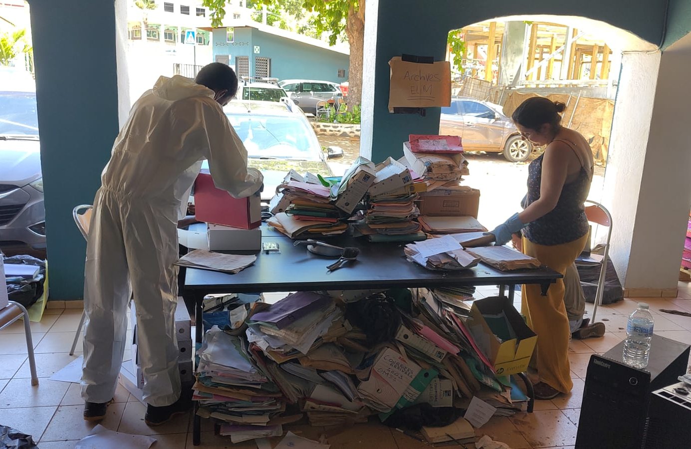 Intervention sur les archives communales après le passage du cyclone Chido